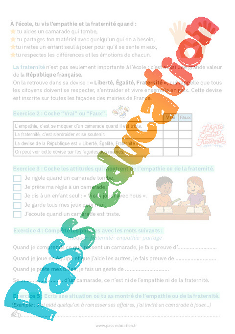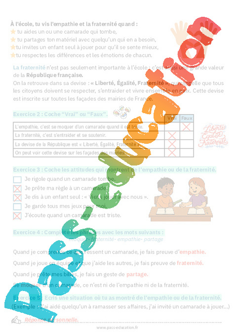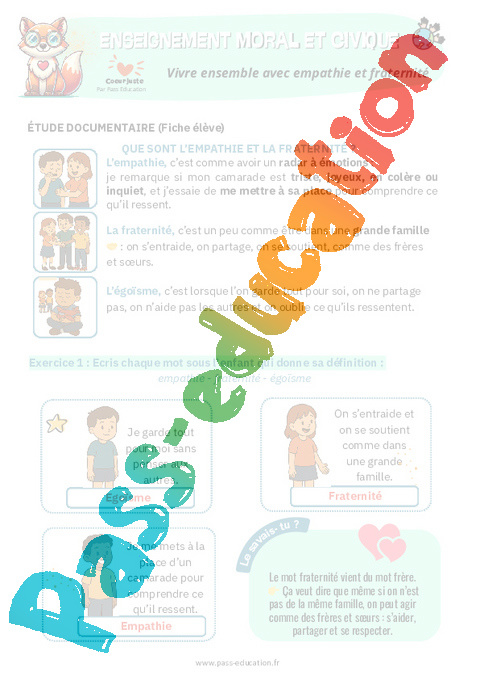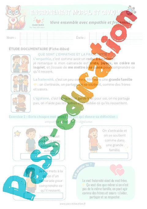 Exercices sur Vivre ensemble avec empathie et fraternité : EMC Education morale et civique.