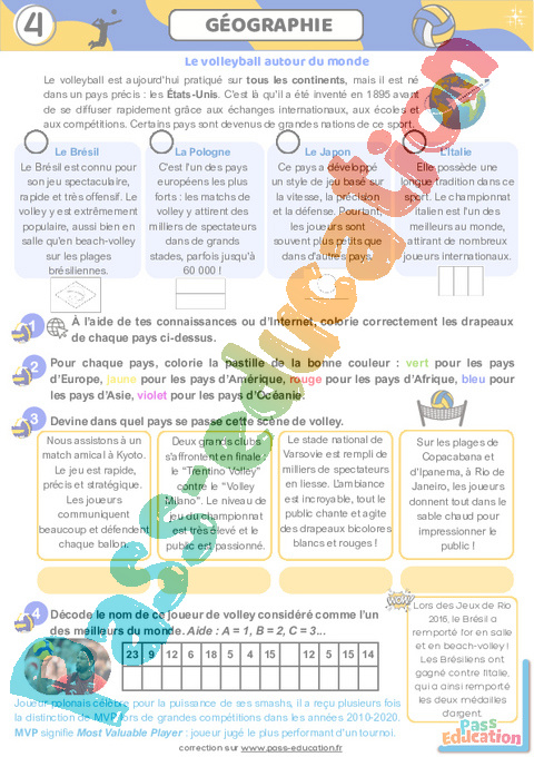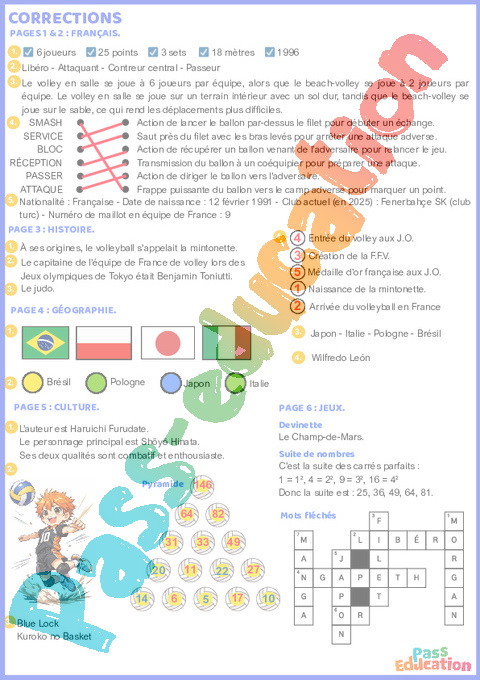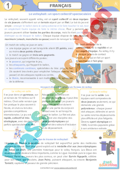 Correction Volley – Cahier de vacances : 1ere, 2eme, 3eme Secondaire pdf
