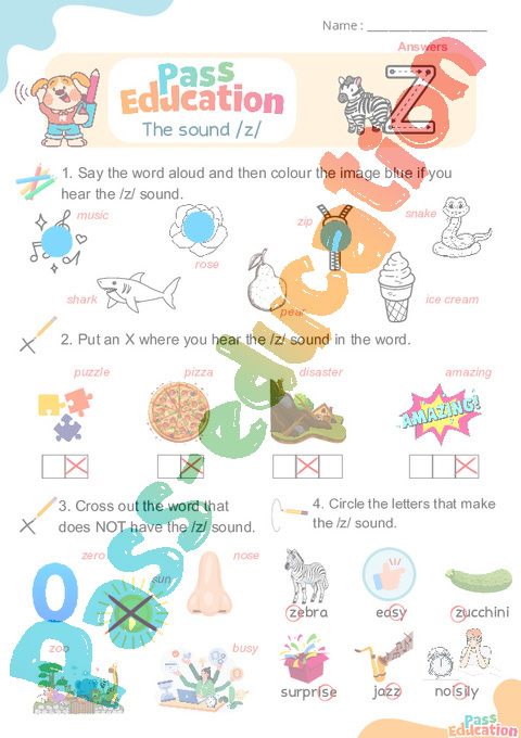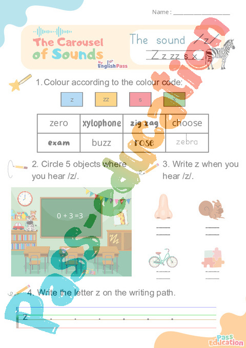 Carousel of Sounds : 3eme Maternelle 1ere, 2eme, 3eme, 4eme, 5eme Primaire – Vidéo interactive + Fiche sur le son : /z/ z zz s x.