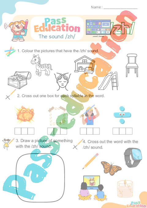 1. Colour the syllables when you hear /zh/.